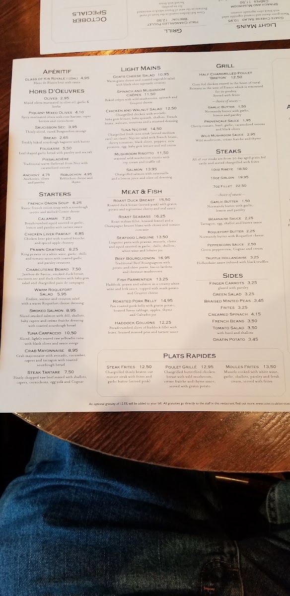 The menu at Cote Barbican is a delightful showcase of fresh, high-quality ingredients, featuring an array of enticing dishes. Highlights include the beef bourguignon cheek, praised for its rich flavors, and the classic steak frites, a staple that never disappoints. Diners have raved about the cheese soufflé and the indulgent chocolate fondant, each dish expertly crafted to elevate your dining experience.